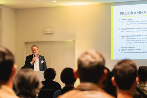 "Vandaag zien we trage procedures en regels die niet afgestemd zijn op de maatschappij. Het hele woondebat zit vast in de Belgische klei en we geraken er maar niet uit. Ik doe dan ook een oproep aan alle beleidsmakers om de koppen bij elkaar te steken. Het is hoogtijd voor een ambitieus beleid. Ga niet voor een woonevolutie maar voor een woonrevolutie. Durf hoger en compacter te bouwen. Durf gaan voor sociale woningen vanuit een maatschappelijk oogpunt." - Johan De Vlieger, voorzitter Embuild Oost-Vlaanderen op Bis.